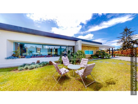Cuenta con área construida de 350 m², Lote 5.126m², aprox, Casa 1 nivel, Compuesta por 3 Habitaciones con Baño y Vestier, Alcoba del servicio con baño, baño social, Sala de Tv (ESTUDIO) , Sala comedor, Jardín exterior, salón de chimeneas, ventanales grandes, casa rustica minimalista, zonas verdes, parqueadero cubierto para 3 carros, descubierto para 8 carros más, cuarto útil.